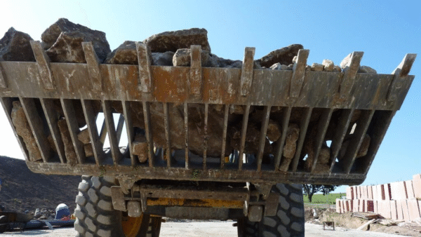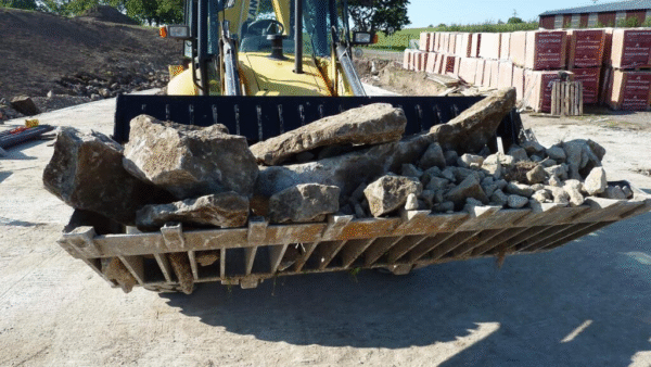 The Grate Shovel is designed for handling and sorting different sized material. It is used in the construction industry to handle and sort building materials of different sizes. It is also useful in agriculture and timber industry to deal with piece material of smaller sizes, e.g. wood.