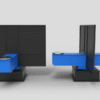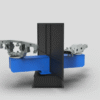While the robot is welding on one side of the positioner, the operator is exchanging parts on the other side behind the apron. When the work is finished, the positioner rotates 180° on the swivel base and the cycle can be repeated. The use of precision cycloidal gearboxes for arm and table rotation allows fast and accurate positioning of the welded parts. The interface of the individual axis gearboxes is adapted to servomotors according to customer requirements.