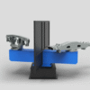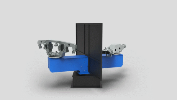 A rotary double sided one-axis positioner for robotic applications. Its configuration allows both welding and exchanging of welded parts simultaneously.