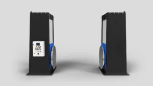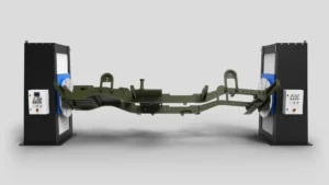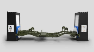 A double column two-axis positioner for robotic welding of long parts. The use of ball screws for lifting, and precision cycloidal gearboxes for table rotation allow fast and accurate positioning of welded parts. The interface of the individual axes gearboxes is adapted to servomotors according to customer requirements.