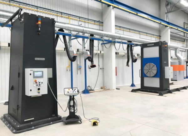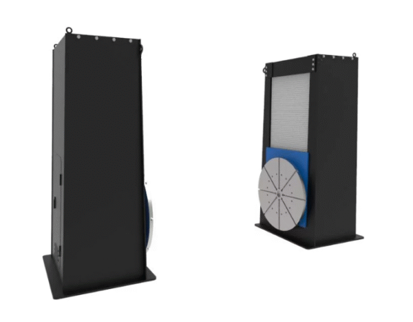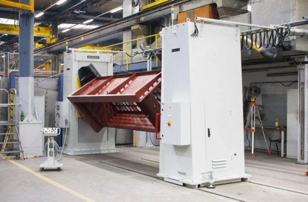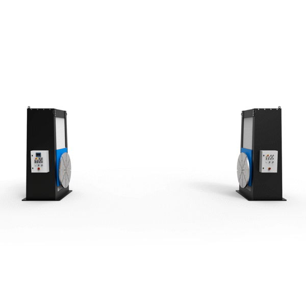 A fully covered double column two-axis positioner for long parts. The hydraulic lift significantly speeds up height adjustment compared to screw positioners. Even the basic configuration positioner features stepless adjustment of table rotation speed in the entire range and is equipped with a START-STOP system.